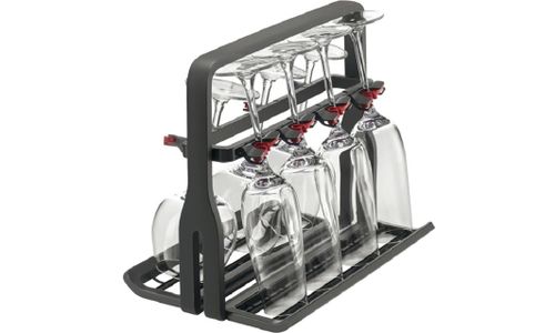 De veelzijdige Glass Basket geeft plaats aan maximaal 8 steelglazen. Vouw hem op om ruimte te besparen en plaats maximaal 4 glazen.