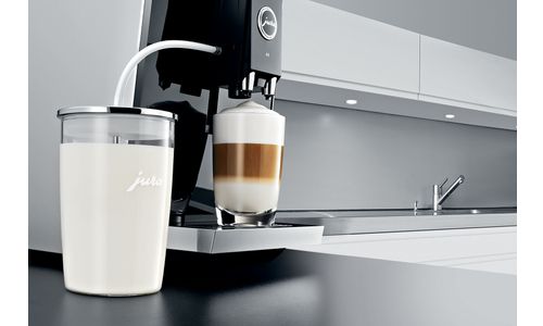 De glazen melkhouder is onmisbaar als ideale aanvulling voor alle koffieliefhebbers die zichzelf, hun familie en hun gasten af en toe willen verwennen met een populaire flat white, latte macchiato of cappuccino. Perfect afgestemd op het design van JURA, kan de melkhouder gemakkelijk in de koelkast worden opgeborgen en indien nodig op de volautomaat worden aangesloten. De melklans beschikt over de ideale aansluithoogte, zodat de melk te allen tijde eenvoudig aangezogen en opgeschuimd wordt. De houder heeft een inhoud van 0,5 liter en is geschikt voor de vaatwasser.