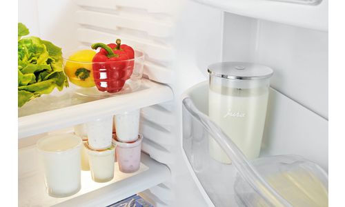 De glazen melkhouder is zeer compact en kan gemakkelijk in de koelkastdeur worden opgeborgen.