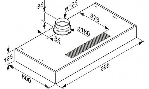 Onderbouwdampkap met energiebesparende led-verlichting en eenvoudige schuifschakelaars.