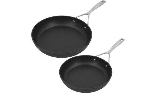 Dit duo van Alu Pro 5 bakpannen (24 en 28 cm) met hun bijzonder duurzame Duraslide Titanium® antikleeflaag zal je niet teleurstellen. Integendeel. Vraag maar aan de testpersonen van de Nederlandse Consumentenbond die dit model in 2018 tot beste pan met antikleeflaag verkozen. Hier bak je zorgeloos en met succes alle mogelijke delicate ingrediënten in: vis, zeevruchten, eieren, zwezeriken, courgettebloemen, gepaneerde producten ... Zolang je dat maar met behulp van accessoires in silicone of hout doet, om beschadiging te voorkomen. De body’s in gesmeed aluminium zijn extra dik en meer dan stevig. Bovendien kan je rekenen op de unieke Duraslide Titanium® antikleeflaag. Die maakt de pannen nog sterker en extra duurzaam. Dankzij de unieke Radiant® bodem zijn en blijven je pannen extra stabiel en in optimaal contact met de kookplaat. De warmte wordt egaal verspreid. De exclusieve TriplInduc® technologie presteert perfect op inductie. Je hebt tot 30% minder energie nodig voor dezelfde temperatuur. Deze pannen reageren supersnel zodra je overschakelt naar een andere fornuisstand. Leg je ze vol met koude ingrediënten, zelfs recht uit de koelkast, dan is ze even snel weer op de juiste temperatuur. Geschikt voor alle kookplaten, zeker voor inductie. Met Alu Pro 5 haal je doordacht en vlot hanteerbaar design in huis, met een ijzersterke prijs-kwaliteitverhouding. Het matzwarte gesmede aluminium contrasteert prachtig met de blinkende roestvrijstalen greep. Deze lichtgewichten hanteer je supervlot en reinigen gaat als vanzelf. Ben je een liefhebber van grillen in de oven of van flamberen? Dan heb je ook een pan zonder antikleeflaag nodig.