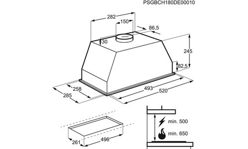++ Breedte: 52 cm ++ Afzuigkracht (hoogste stand): 440 m³/h ++ Geluidsniveau (Maximum): 67 dB ++
