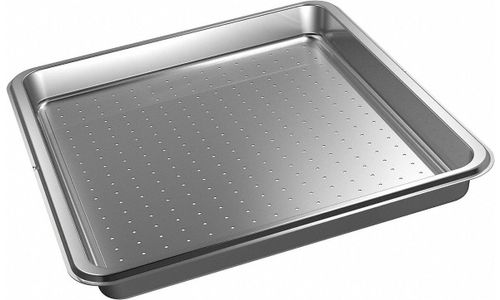 Stoomovenpan met gaatjes voor het blancheren of garen van groente, vis, vlees en aardappelen etc.