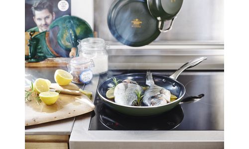 Keramisch kookgerei verdeelt e?ciënter de warmte. Voorverwarmen is niet nodig. Gebruik steeds een lage tot middelhoge temperatuur.