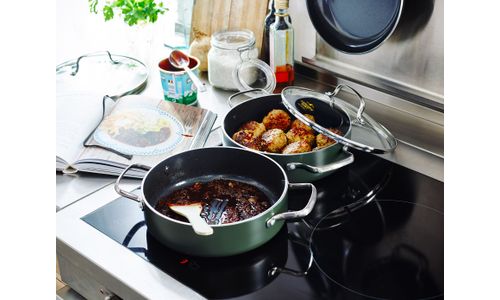 Keramisch kookgerei verdeelt e?ciënter de warmte. Voorverwarmen is niet nodig. Gebruik steeds een lage tot middelhoge temperatuur.