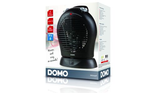 Zorg voor een aangename warmte in enkele seconden met de warmeluchtblazer DO7324F van DOMO. Een koude winteravond wordt instant gezellig. De blazer heeft 2 warmtestanden van 1000 en 2000 W, ook de thermostaat regel je met een draai aan de knop. De dubbele beveiliging zorgt ervoor dat het toestel uitschakelt bij omvallen en dat het niet kan oververhitten. Het toestel heeft een draaifunctie met oscillatie tot 45° voor een goede verdeling van de warmte. Maar ook in de zomer kan je de luchtblazer gebruiken. Met de ventilatiestand blaast het toestel koele lucht zonder te verwarmen.