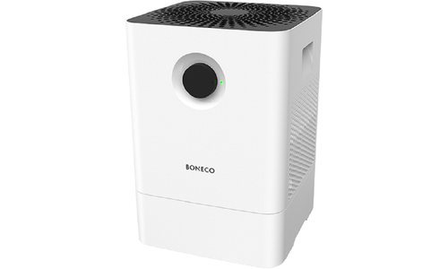 Boneco W200 bevochtigt en wast de lucht, hij verhoogt de luchtvochtigheid en verwijdert vuildeeltjes uit de lucht. De bevochtiger levert kalkvrije waterdamp door koud water verdamping. Een schone manier van lucht bevochtigen!
