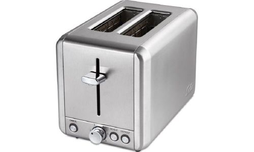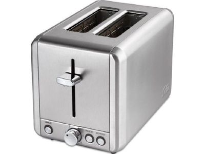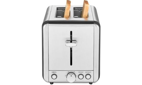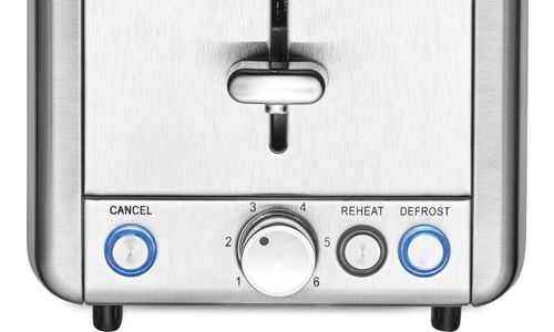 Broodrooster met roestvrijstalen kast en extra grote toastsleuven.