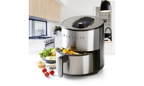 De deli-fryer DO530FR van DOMO zorgt er niet enkel voor dat je snel en energiezuinig kan frituren, maar ook dat je tot wel 80% minder vet frituurt in vergelijking met een gewone friteuse. Gebruik de airfryer niet enkel voor frieten en kroketten, maar probeer eens kip, vlees, quiche of zelfs cake! De heteluchtfriteuse is eenvoudig te bedienen via het lcd-display en beschikt daarenboven over 8 automatische programma’s. Je kan uiteraard ook de timer en temperatuur afzonderlijk instellen. Neem een kijkje in het receptenboekje voor de nodige inspiratie.