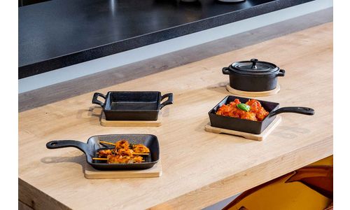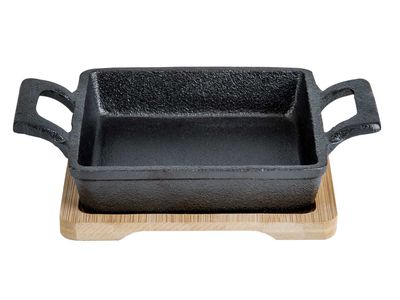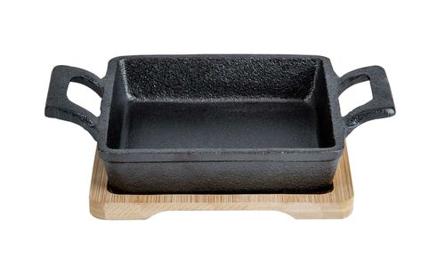 Gietijzer Gratinschaal Vierkant 13x13xh3 Coated - Bamboo Tray