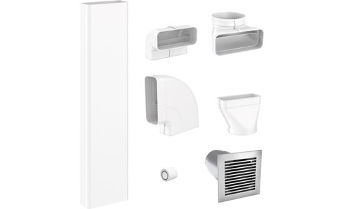 Platte-buisset luchtafvoer (incl. wandkast) voor een individuele luchtgeleiding in luchtafvoermodus.