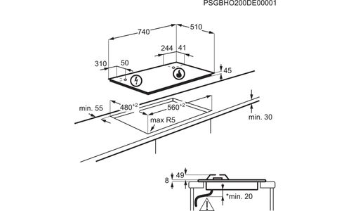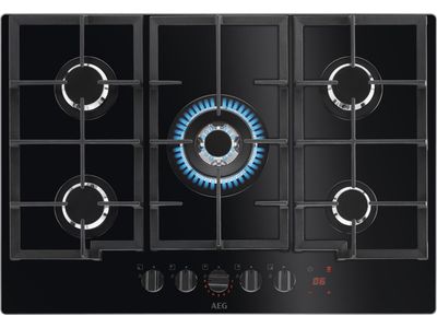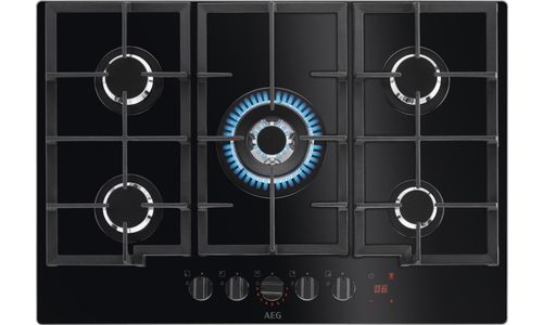 Gaskookplaat, FlameLight, 5 gasbranders, 75 cm, thermokoppel, gas op glas, StepPower, H²H