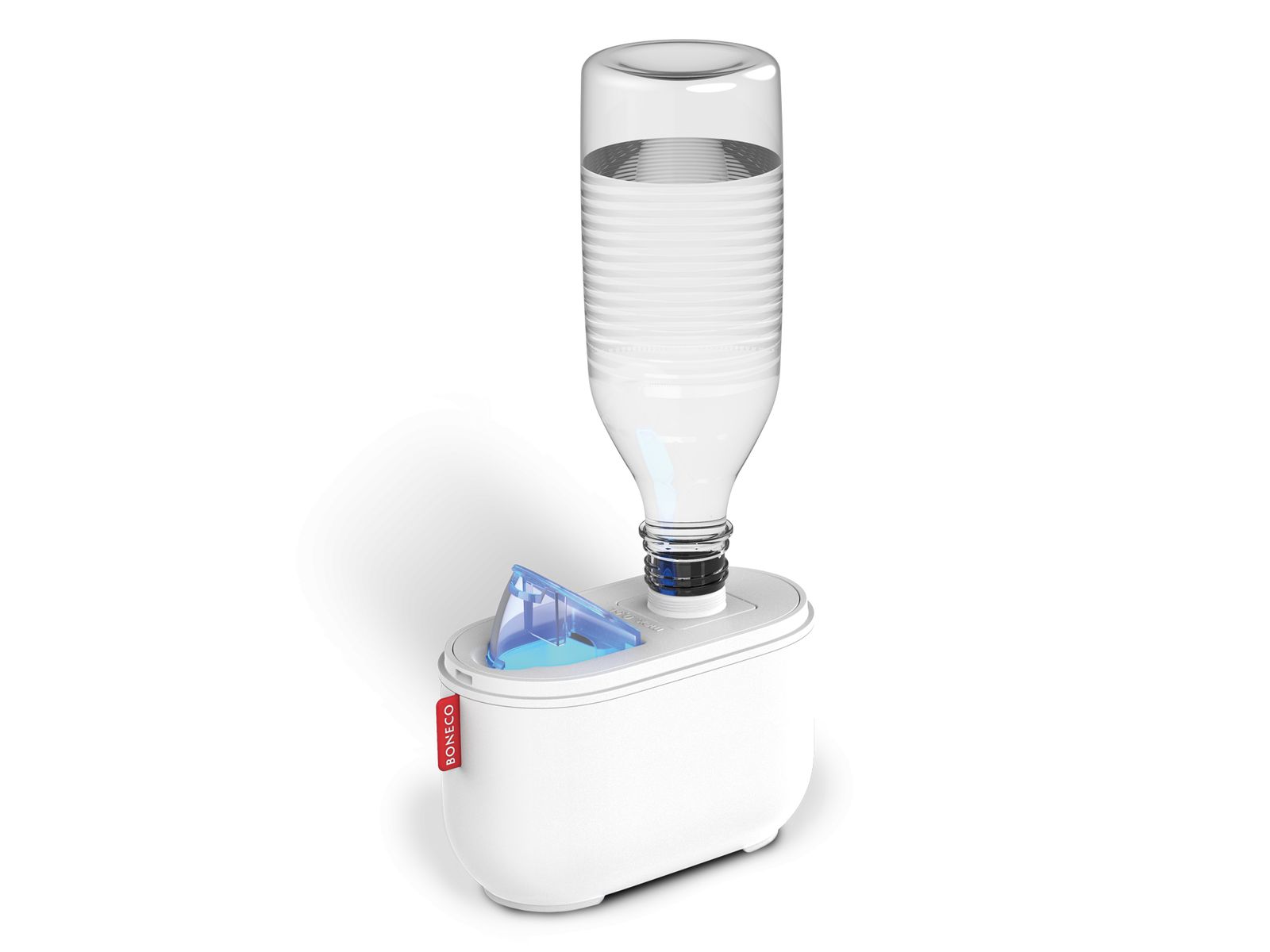 Met onze handige reisbevochtiger geniet je niet alleen thuis of op kantoor van een goede luchtkwaliteit, maar ook onderweg! De compacte luchtbevochtiger past precies in elk stuk bagage om u te voorzien van goed bevochtigde lucht - waar u ook bent. Plaats gewoon een PET-fles, sluit het apparaat aan en geniet van gezonde lucht in uw kamer. Met de variabele uitgangsregeling kunt u de vochtigheidsafgifte precies zo instellen als u wilt. De handige reisgenoot schakelt automatisch uit als het water op is.