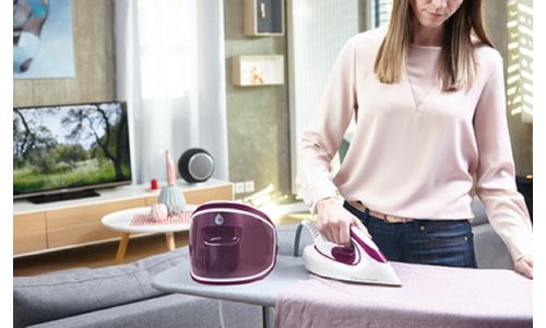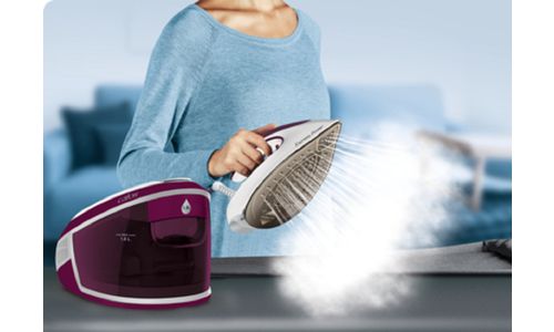 De stoomkracht van de Express Power stoomgenerator, die krachtig genoeg is om kreuken uit elke stof te verwijderen, zorgt voor snelle en betrouwbare resultaten, en komt met een nieuwe afneembare kalkcollector voor een eenvoudig onderhoud en een duurzame werking. Deze uiterst efficiënte stoomgenerator is uitgerust met het No-Setting systeem om veilige strijkbeurten te garanderen zonder risico op verbranding, terwijl de geavanceerde Durilium Airglide zooltechnologie zorgt voor een onberispelijke glijdende werking.