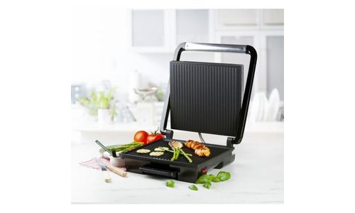 De multifunctionele contactgrill DO9245G van DOMO is perfect voor het grillen van panini’s, toasts, vlees, vis, groenten,… Het zwevend deksel past zich automatisch aan aan de inhoud zodat de bovenste bakplaat een optimaal contact behoudt met het voedsel. Dit alles voor een perfect bakresultaat.