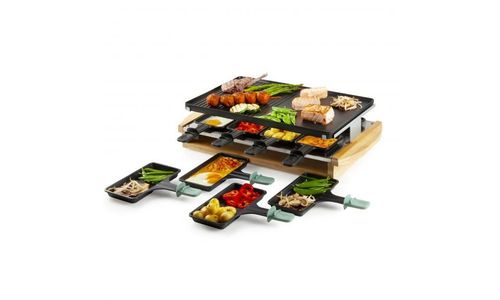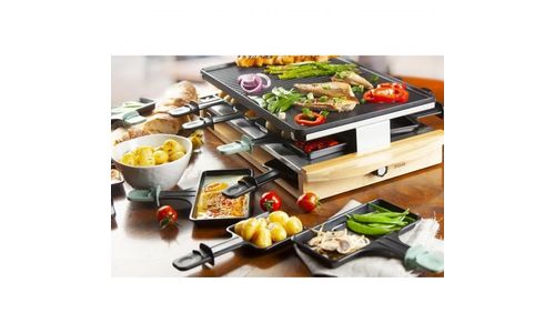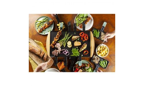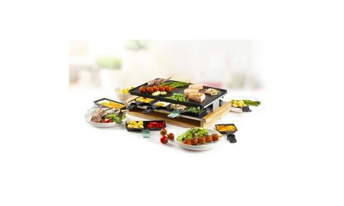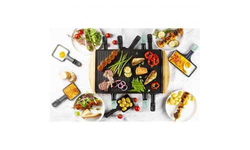 - 3 niveaus: grillplaat, zone voor raclette en rustzone voor raclettepannetjes