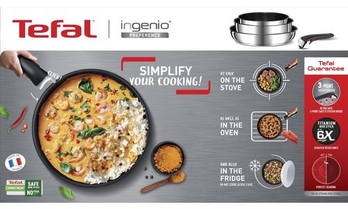 >Ingenio is gemaakt om de kookervaring thuis te vereenvoudigen. Zet de kookplaat aan, verwarm de oven en schuif de restjes rechtstreeks in de koelkast* De handige verwijderbare handgreep is zoveel meer dan een gadget: ultraveilig door het 3-punts veiligheidssysteem, bestand tegen gewichten tot 10 kg** en ook nogeens 10 jaar garantie*** Ingenio bespaart elke dag tijd en energie in de keuken. Geen krassen, niets blijft plakken en geen deuken: de juiste keuze pannen kunnen het verschil maken. De Tefal Ingenio Preference-pannen leveren de juiste prestaties met compromisloze kwaliteitsnormen. Gemaakt van 18/10 roestvrij staal, binnenkant voorzien van de nieuwste Tefal Titanium coating die tot wel zes keer langer meegaat in vergelijking met de Tefal standaard én daarnaast heeft de pan ook een handige dikke bodem geschikt voor inductie. Deze pannen zijn ontworpen om elke culinaire uitdaging aan te gaan en laten je nooit in de steek met prestaties die het verschil maken. Til je kookkunsten naar een heel nieuw niveau met Tefal's beste pannen ooit.