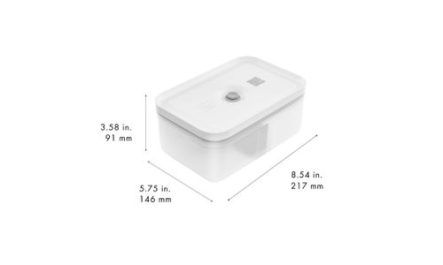 Ontworpen voor een leven onderweg, is de vacuüm-lunchbox maat L in semi-transparant ontwerp extreem licht en bijzonder schokbestendig. Maar al snel wordt het ook een onmisbaar object in huis! Net als alle andere kunststof bakjes in het vacuüm bewaarassortiment, is hij gemaakt van BPA-vrij plastic, vorstbestendig en geschikt voor de magnetron en vaatwasser. Je kunt overtollig voedsel en restjes ook beheren via de ZWILLING Culinary World-app, simpelweg door de QR-code op het deksel van de container te scannen. De herinneringsfunctie van de gratis app laat je tijdig weten wanneer eten en gerechten genuttigd moeten worden.