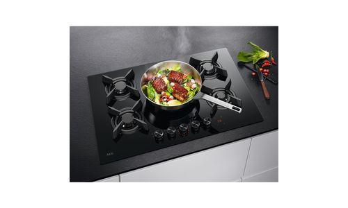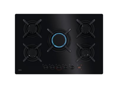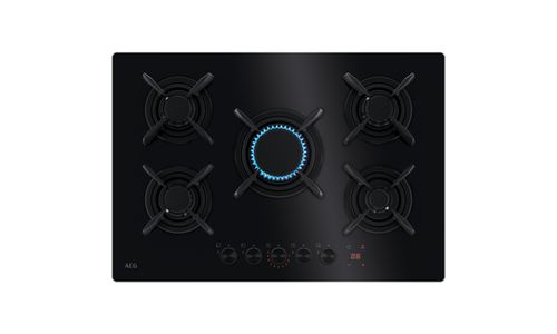 Gaskookplaat, 75cm, VerticalFlame, Elektronisch, StepPower, 5 gasbranders, Gas op glas