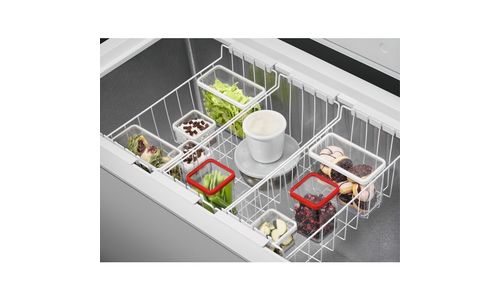 De elektronische regeling biedt de mogelijkheid om de temperatuur en andere bewaarfuncties nauwkeurig aan te passen. Deze efficiënte diepvrieskist geeft je ook direct informatie over je aanpassingen via het digitale bedieningspaneel.