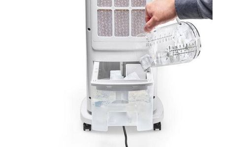 Deze verdampingskoeler leidt warme lucht door een met water verzadigde verdampingsmat, waardoor het water wordt omgezet in damp en koele lucht wordt uitgeblazen. Als het heel warm is, kun je ook ijsblokjes of koelelementen aan het waterreservoir toevoegen. Activeer de horizontale oscillatie om de lucht beter door de kamer te laten circuleren. De verticale richting van de luchtstroom kan handmatig worden aangepast. Zo creëer je eenvoudig een aangenaam klimaat op maat.
