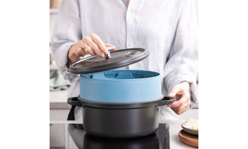 Deze stoominzetstuk is slim ontworpen om dingen snel en gemakkelijk te houden. Neem gewoon je favoriete braadpan van 24 cm. Vul de braadpan voor minimaal de helft met water, plaats het stoominzetstuk erop en klaar is kees! Door de dubbelwandige constructie kan stoom omhoog komen, zodat je eten gelijkmatig wordt gestoomd, van boven naar beneden! U kunt zelfs een hele maaltijd bereiden: stapel gewoon twee of drie stoominzetstukken op elkaar en laat de magie gebeuren!