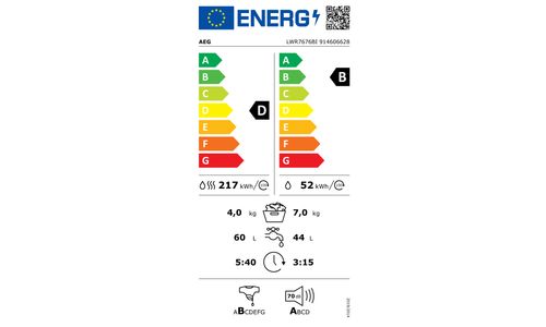 Energieverbruik voor wassen en drogen per 100 cycli | 217 kWh |