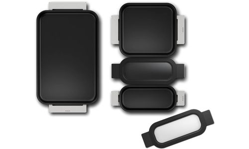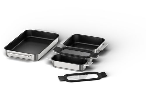 - Flex Pan groot: 45 x 26 cm (bovenkant inclusief handgrepen) / 35 x 22 cm (onderkant)