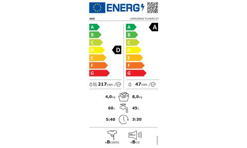 Energieverbruik voor wassen en drogen per 100 cycli | 217 kWh |
