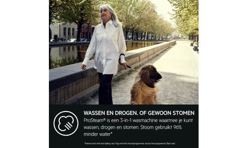 De 7000 serie ProSteam® was-droogcombinatie is een 3-in-1 toestel dat het wasproces voor je stroomlijnt met was-, droog- en stoomprogramma's. Stoom gebruikt 96% minder water*, en is zachter dan wassen, zodat kleding er langer mooi blijft uitzien.