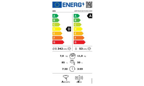 Energieverbruik voor wassen en drogen per 100 cycli | 342 kWh |