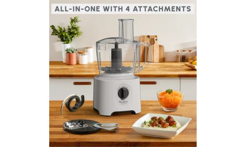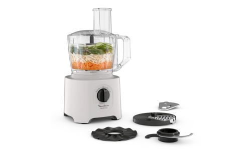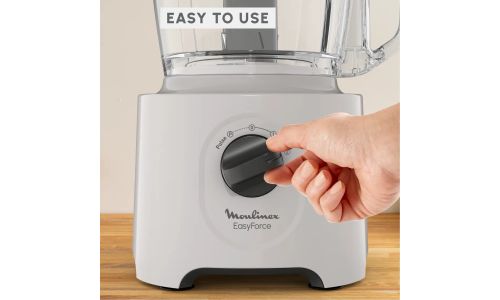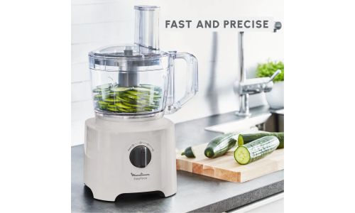 De Moulinex Easy Force keukenmachine zit boordevol speciale functies die zijn ontworpen voor beginners en levert met gemak perfecte resultaten. 4 veelzijdige hulpstukken bieden 15 verschillende culinaire functies, met snelheidsinstellingen op elk hulpstuk, zodat u de kunst van het snijden, raspen, hakken, emulgeren en nog veel meer onder de knie krijgt.