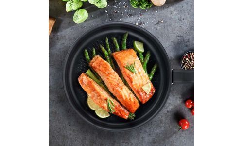- IDEAAL FORMAAT: Deze speciaal ontworpen set kookgerei beidt eindeloze bereidingsmogelijkheden voor gezonde gerechten boordevol smaak, gaande van visfiletjes tot krokante veggie burgers — en dit zonder toevoeging van vetten of oliën