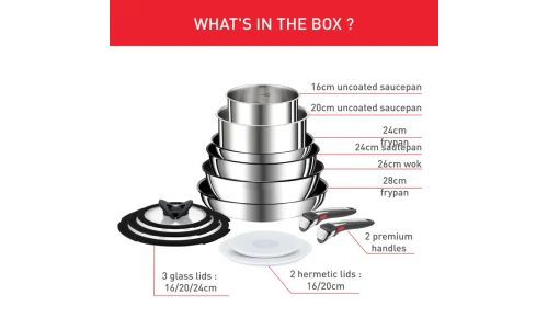 - RUIMTEBESPAREND: Met z’n ruimtebesparende stapelbare ontwerp past het Ingenio kookgerei makkelijk in kasten en op schappen
