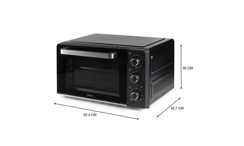 Met de DOMO oven ‘Bake & Snack’ DO1107GO maak je de lekkerste ovengerechtjes klaar! Deze vrijstaande oven heeft een capaciteit van 28 L met 3 inschuifhoogtes. Je hebt de keuze uit 3 verschillende ovenstanden: verwarming bovenaan, verwarming onderaan en verwarming boven- én onderaan. Dankzij de mechanische bediening stel je makkelijk de juiste ovenstand in. Met de onderste draaiknop stel je de timer gemakkelijk in tot 120 minuten. Na afloop klinkt er een handig belsignaal. De temperatuur kan ingesteld worden tot 230°C. Bakken, braden, grillen of opwarmen - het kan allemaal moeiteloos. Deze oven voegt stijl en efficiëntie toe aan je keuken, haal hem dus vandaag nog in huis!