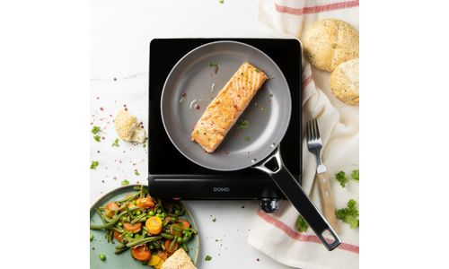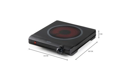 Snel en energiezuinig kook je met de keramische kookplaat DO30111KP van DOMO. De infraroodtechnologie zorgt voor efficiënt koken en een snelle opwarming van de kookplaat. Het toestel heeft één kookzone met Ø 18 cm, ideaal om een eenpansgerecht te bereiden. Met de regelbare thermostaat kies je tussen 6 standen. Op deze manier kook je in geen tijd een heerlijke maaltijd op tafel. De keramische kookplaat verbruikt 30% minder energie vergeleken met traditionele elektrische kookplaten. Daarenboven is het hoogwaardig keramisch oppervlak ook eenvoudig te reinigen.
