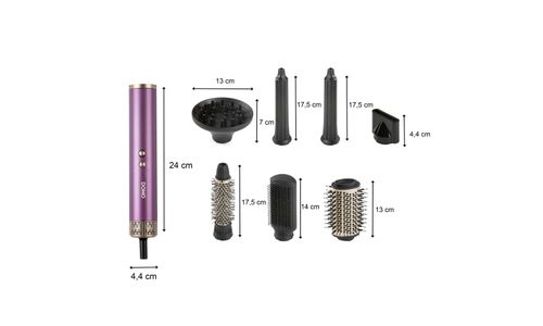 Ontdek de ultieme stylingervaring met de DOMO 7-in-1 multifunctionele kapselr DO54782HS. Met 7 accessoires biedt deze multistyler alles wat je nodig hebt om de gewenste look te bereiken, of het nu gaat om steil, steil haar of volumineuze krullen.