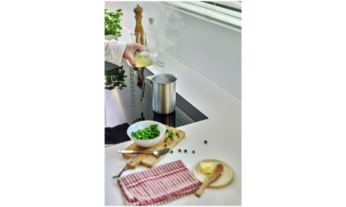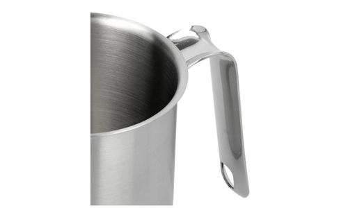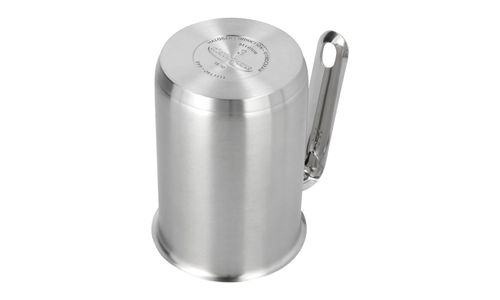 Zoek je een bijzonder handige assistent voor het afwerken van sauzen? Hier is ons roestvrijstalen hoge sauspotje. Speciaal ontwikkeld op vraag van enkele topchefs en voorzien van maatindicaties tot 1 liter. Nu kan je je saus perfect vooraf bereiden en op het fornuis warmhouden. Bij een uitgebreider menu heb je vaak enkele sauzen nodig. Dan gebruik je gewoon een paar hoge sauspotjes naast elkaar. Dat lukt probleemloos dankzij de kleine diameter van 10 cm. Geschikt voor alle kookplaten, ook inductie. Net voor je gaat serveren kan je de saus in het hoge sauspotje nog even aan de kook brengen. Indien nodig kan je ze nog verder afwerken door te monteren met boter bijvoorbeeld. Je saus schuimig maken lukt in een handomdraai, met de staafmixer, rechtstreeks in het potje. Dankzij de stevige, gelaste greep en de handige schenkrand leent het hoge sauspotje zich ook prima om zonder morsen saus uit te schenken en te portioneren op het bord of op een gerecht.