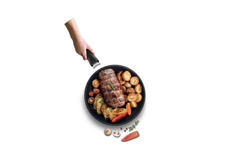 De Thermo-Signal™ in de bodem van de pan geeft aan wanneer de ideale baktemperatuur is bereikt. Op deze temperatuur blijven texturen, kleuren en smaken behouden. Voor heerlijke, smaakvolle maaltijden, elke dag weer!