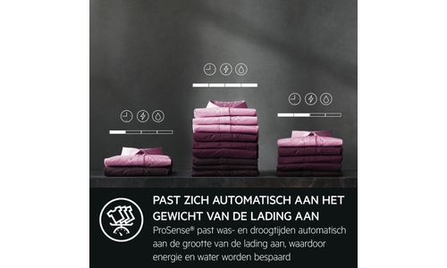 De gewichtssensoren van PreciseLoad+ bieden directe, exacte feedback, zodat je weet of er te veel of te weinig wasgoed in de trommel zit. Zo kun je de hoeveelheid wasgoed en wasmiddel optimaliseren. De machine past daarna de benodigde hoeveelheid tijd, energie en water automatisch aan de lading aan.