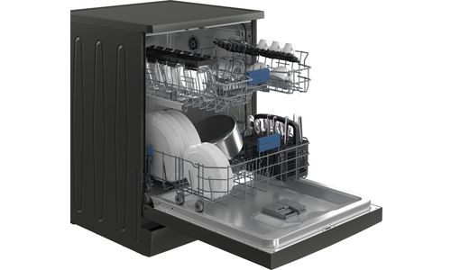Bezeer je vingers niet bij het openen van de afwasmiddeldispenser. De schuivende afwasmiddeldispenser kun je gemakkelijk openen en sluiten, zodat afwasmiddel toevoegen in een oogwenk is gebeurd.