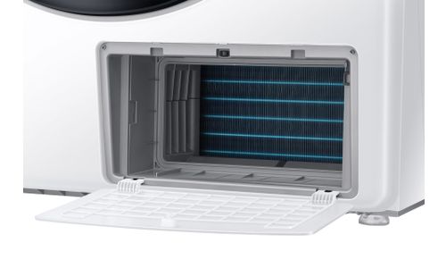 Met het 3-laags filtersysteem heb je minder last van stof op je kleren en blijft je droger in topvorm. Het filter vangt stof en vezels die van je kleren komen tijdens het drogen heel goed op, twee keer met een 2-in-1 filter onder de trommel en een derde keer met een microsoftfilter* voor de warmtewisselaar.