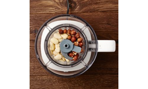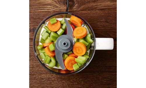 Het functionele ontwerp met twee containerformaten zorgt voor het efficiënt hakken van kleine en grote hoeveelheden ingrediënten.