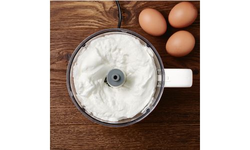 De emulsieschijf is ideaal voor het kloppen van eiwitten en slagroom, maar ook voor het moeiteloos mengen van dips, dressings en andere ingrediënten.
