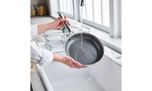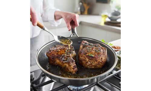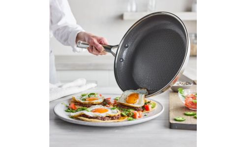 GreenPan APEX is een heruitvinding van hybride kookgerei. We combineren een krachtig geëtst patroon in roestvrij staal met onze kenmerkende PFAS-vrije antiaanbaklaag en voegen een boostlaag toe voor maximale prestaties. Ongelooflijke schroeiresultaten en moeiteloze loslating. Gemaakt van drielaags roestvrij staal is APEX zes keer beter bestand tegen metalen keukengerei, ontworpen voor alle kookplaten en ovenbestendig tot 220 graden Celsius. Het is ook gemakkelijk schoon te maken. Ervaar de evolutie van hybride kookgerei met GreenPan.
