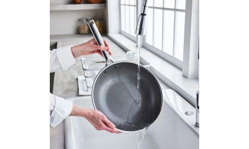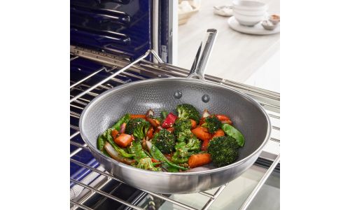 GreenPan APEX is een heruitvinding van hybride kookgerei. We combineren een krachtig geëtst patroon in roestvrij staal met onze kenmerkende PFAS-vrije antiaanbaklaag en voegen een boostlaag toe voor maximale prestaties. Ongelooflijke schroeiresultaten en moeiteloze loslating. Gemaakt van drielaags roestvrij staal is APEX zes keer beter bestand tegen metalen keukengerei, ontworpen voor alle kookplaten en ovenbestendig tot 220 graden Celsius. Het is ook gemakkelijk schoon te maken. Ervaar de evolutie van hybride kookgerei met GreenPan.