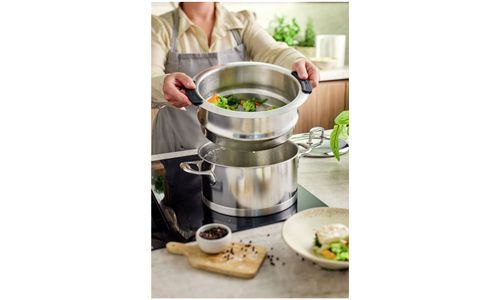 De speciale siliconen afsluitring voorkomt stoomverlies en maakt het mogelijk om meerdere stoominzetten op elkaar te stapelen. Dankzij de doordachte vormgeving til je de inzet moeiteloos van de pot. Het roestvrij staal met Silvinox®-technologie verkleurt niet en is eenvoudig te reinigen.