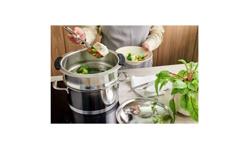 Stoom in een handomdraai knapperige groenten zoals broccoli, wortels of sugarsnaps met de Demeyere Specialties 5 stoominzet 20 cm – of bereid perfect gegaarde visfilets met citroen en kruiden. Deze veelzijdige inzet maakt stomen niet alleen eenvoudiger, maar ook gezonder: pure smaken blijven behouden, en kleur, vitamines en mineralen blijven maximaal intact. Bovendien kook je met minder vet en bespaar je energie.