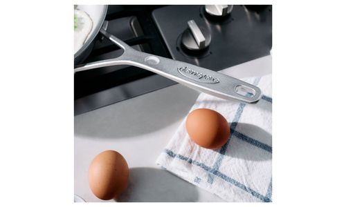 De ergonomische, gelaste greep ligt comfortabel in de hand en is stevig én hygiënisch bevestigd dankzij onze speciale lasmethode. De pan mag in de vaatwasser, maar om de levensduur te verlengen raden we aan met de hand af te wassen. Tip: gebruik de “eerst water, daarna de rest”-methode. Vul de pan na het koken met een laagje water en een beetje afwasmiddel, laat dit even staan tijdens het eten en spoel nadien eenvoudig schoon met een spons.