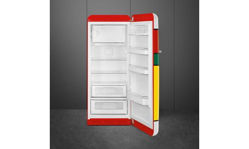 De originele gekleurde FAB28 koelkast is meer dan zomaar een koelkast. Hij domineert zijn omgeving, net als de zetel of verlichting in je woonkamer. Smeg heeft ook een reeks andere toestellen ontwikkeld met exact hetzelfde vintage-thema: koelkasten in verschillende maten en met verschillende capaciteiten, diepvriezers, wasmachines en vaatwassers. Altijd suggestief en eclectisch, ze zijn de referentie van de "Made in Italy" design kwaliteit die over de hele wereld beroemd is om zijn mix van kunst en functionaliteit.